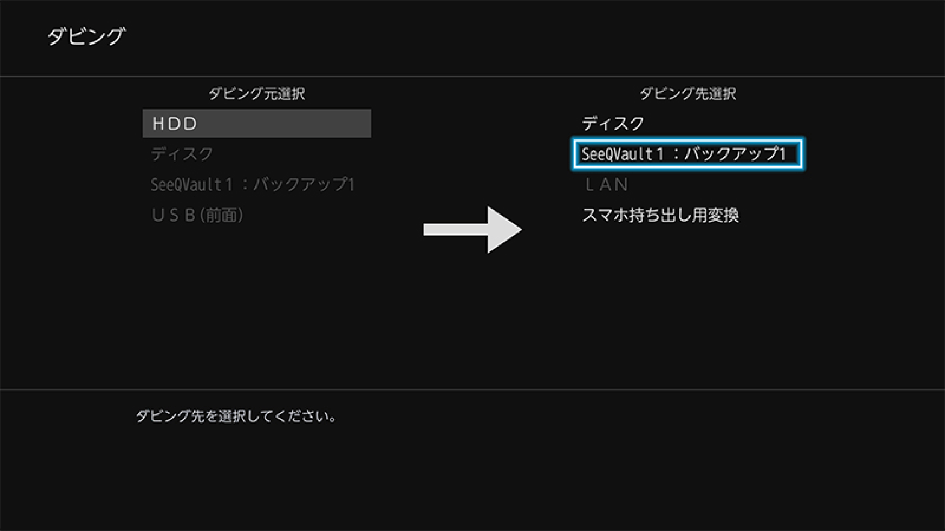 ※ SeeQVault™対応USBハードディスクに、「引越・バックアップ用」としてダビング10番組をダビングした場合、SeeQVault™対応USBハードディスクにはコピーワンス番組として記録されます。