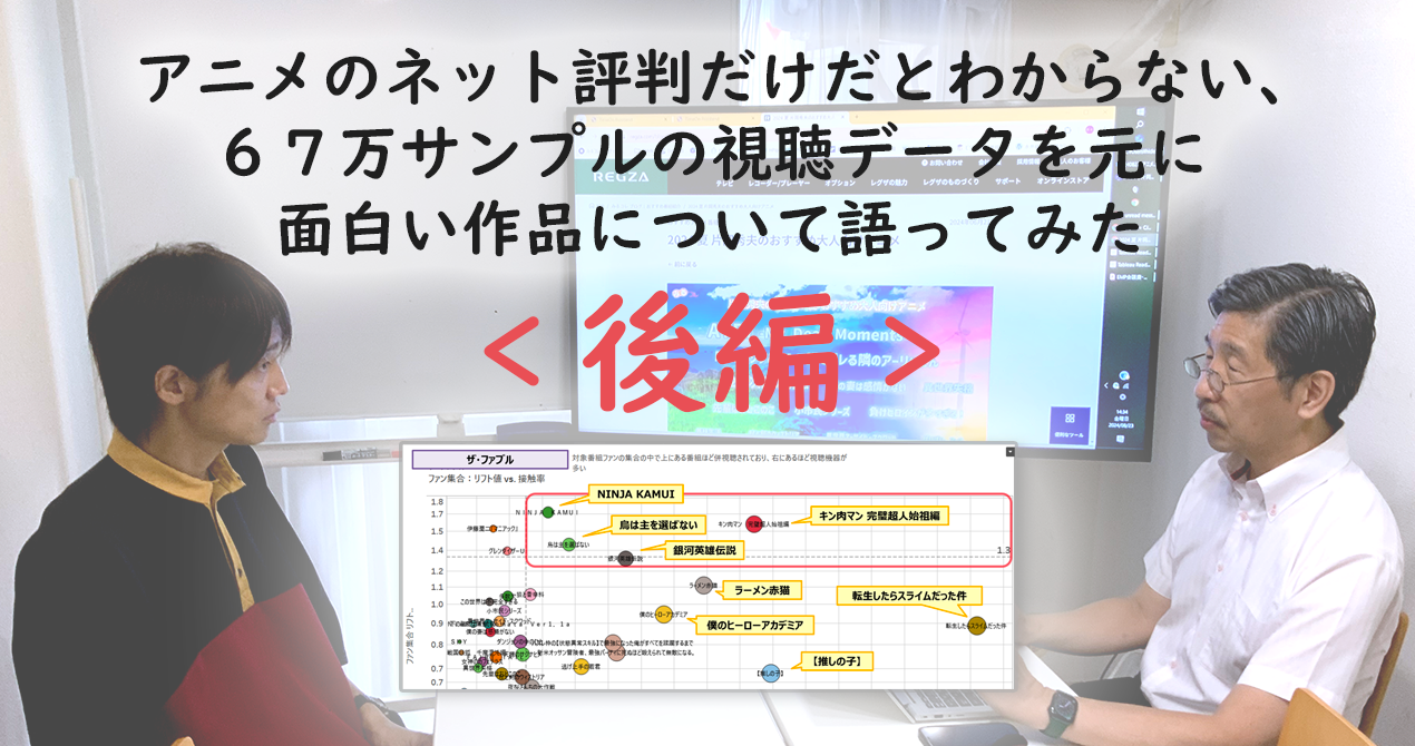 <後編>【2024夏アニメ最終結果】67万サンプルの視聴データを元に、総合ベスト10と、片岡・吉田推し作品を語ってみた。 (リンクを開きます)