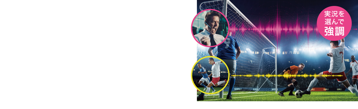 スポーツ番組では解説の音声を聞き取りやすくしたり、スタジアムなどの歓声を強調して臨場感を高めたり、ドラマなどでは背景音を弱めてひとの声を聞き取りやすくすることも可能。