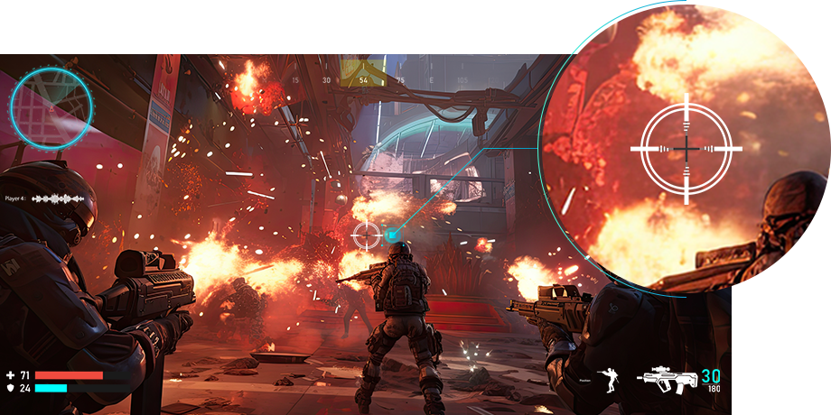 ブラックゲインレベルの調整やガンマカーブの選択によりFPSゲームで重視される暗がりの視認性を向上し、背景に紛れ込む敵も容易に見つけだせます。