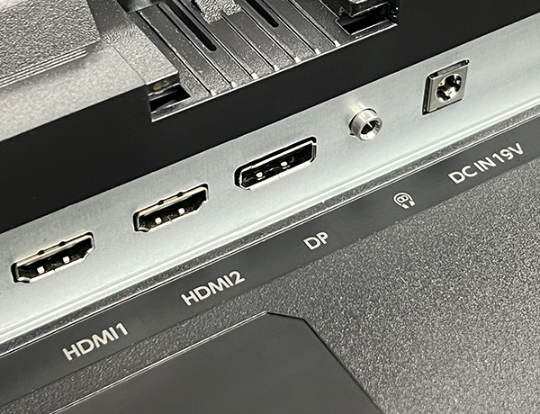映像入力にDP×1系統とHDMI×2系統を、音声出力にステレオミニジャックを搭載。