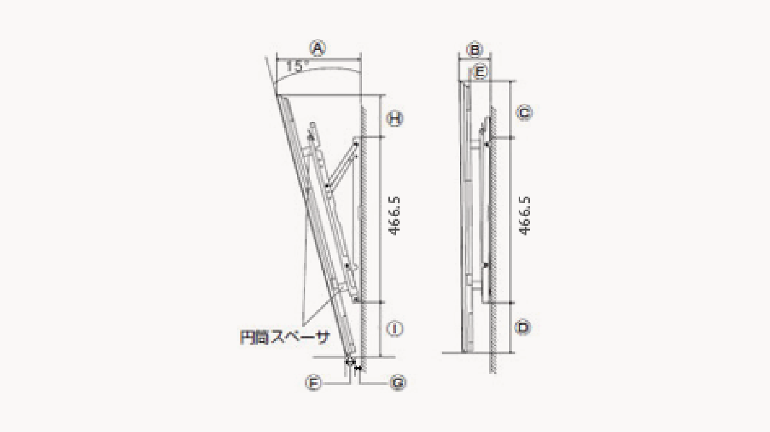 ※77X9900Mは チルト角度15度は使用できません。最大値は10°の時の寸法です。