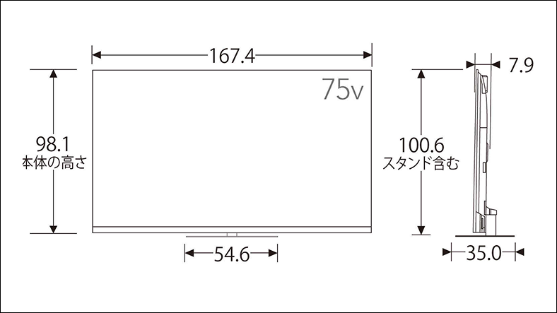 外形寸法(スタンド付き) 幅×高さ×奥行 | 167.4cm×100.6cm× 35.0cm |