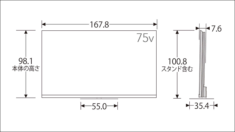 外形寸法(スタンド付き) 幅×高さ×奥行 | 167.8cm×100.8cm×35.4cm |